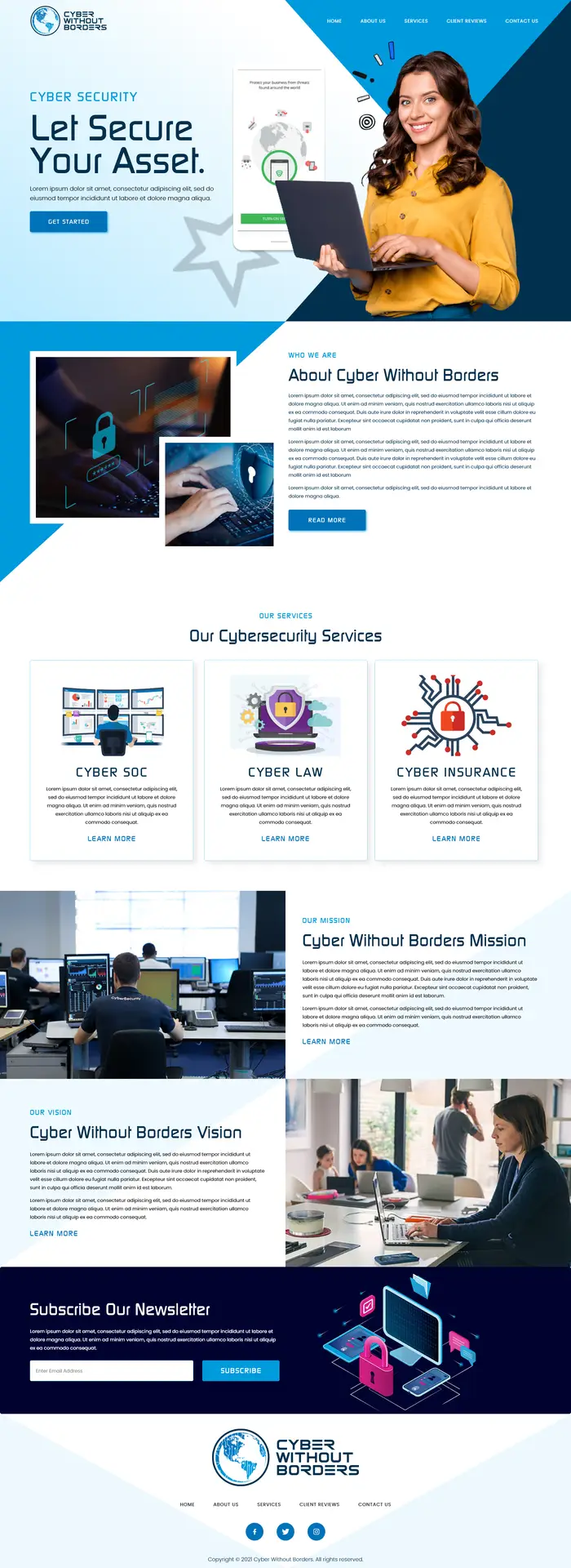 The UI design for Cyber Without Border is focused on promoting a sense of global cybersecurity awareness and accessibility. With a sleek, high-tech aesthetic, the interface incorporates dark themes and vibrant accents to evoke a secure, modern environment. Clear sections guide users through services, resources, and cybersecurity solutions, while interactive features, like real-time threat monitoring and educational tools, enhance user engagement. The design is optimized for clarity and ease of use, appealing to a global audience by emphasizing a borderless approach to cybersecurity and information protection.