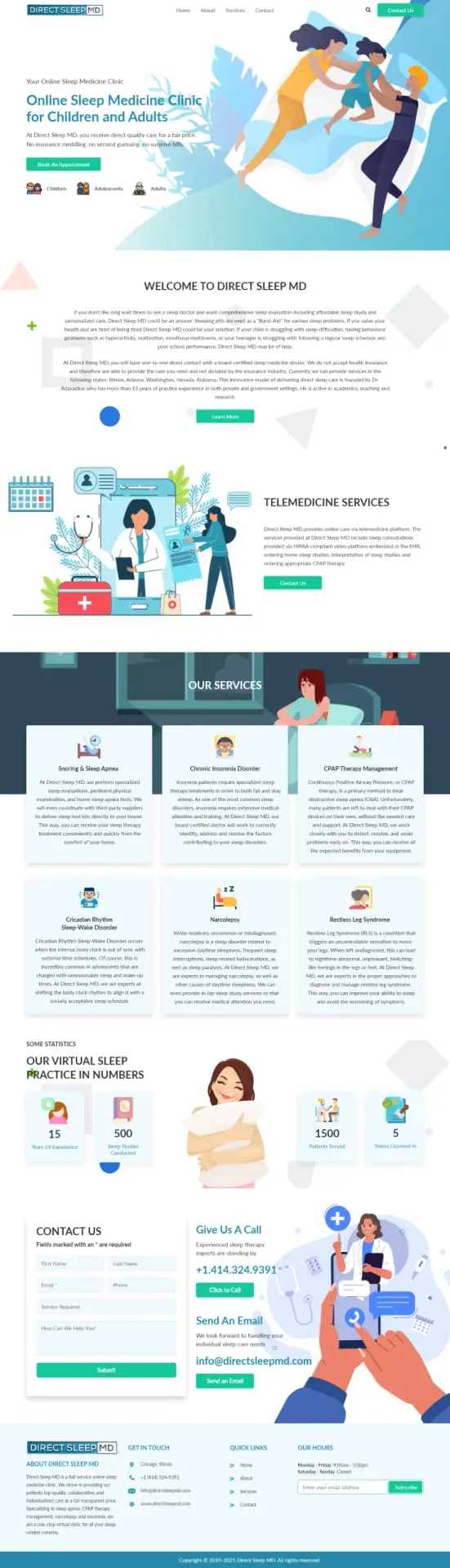 The UI design for Direct Sleep MD aims to provide a welcoming and calming user experience tailored to sleep health services. With a soft color palette and soothing visuals, the design fosters a sense of tranquility and support, helping users feel at ease as they explore treatment options and resources. Clear navigation and well-organized sections guide users through sleep assessments, treatment plans, and educational content. The design prioritizes user accessibility and clarity, allowing patients to quickly find information and book consultations, all while enhancing their journey toward better sleep health.