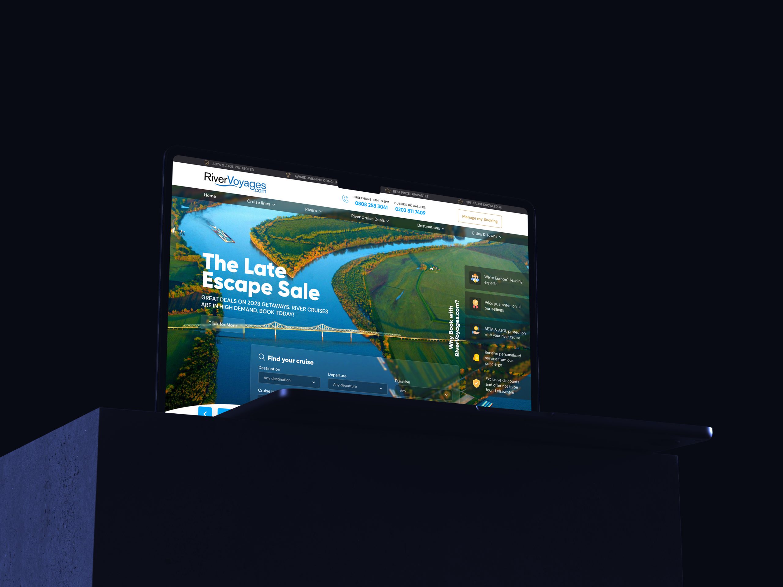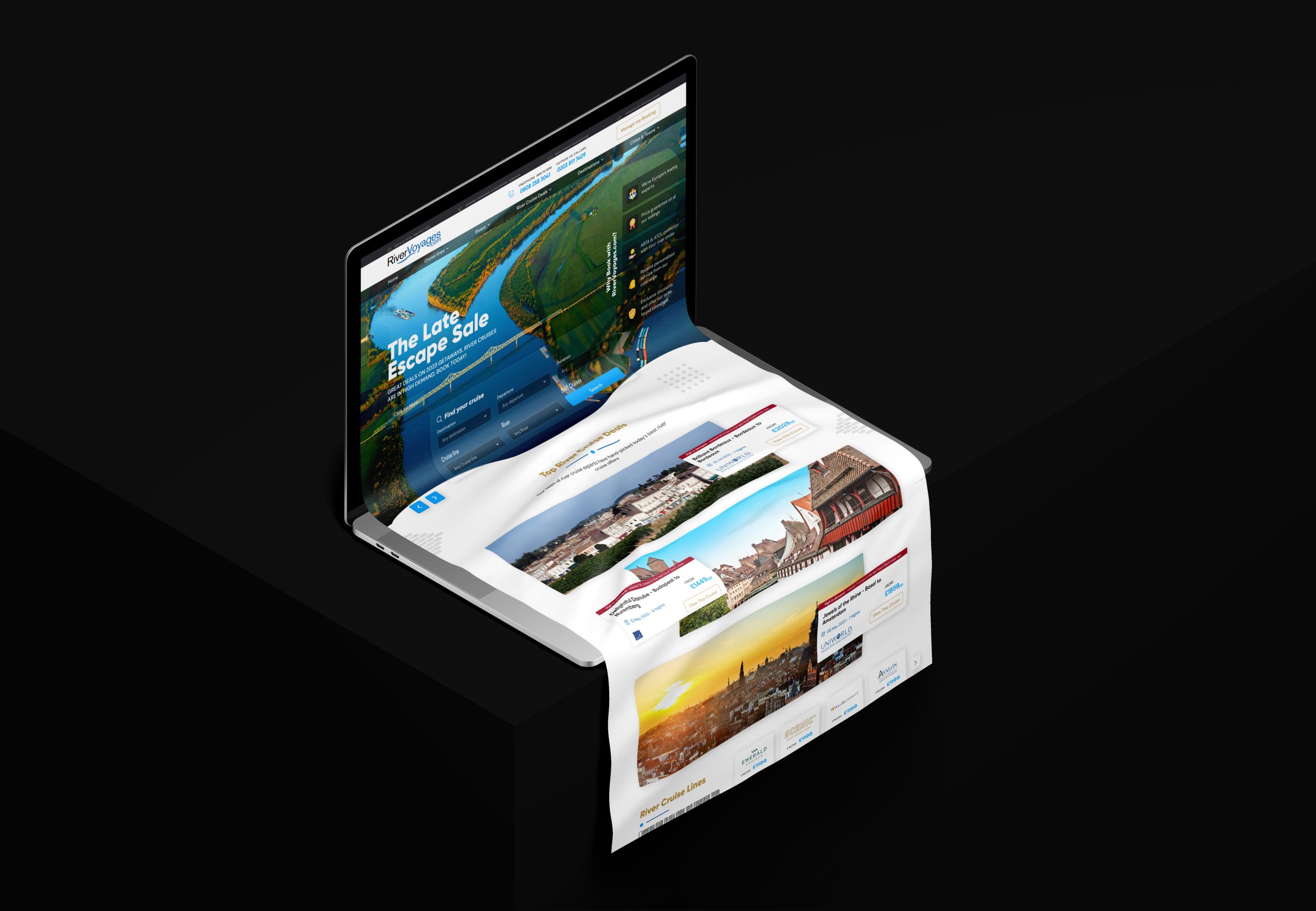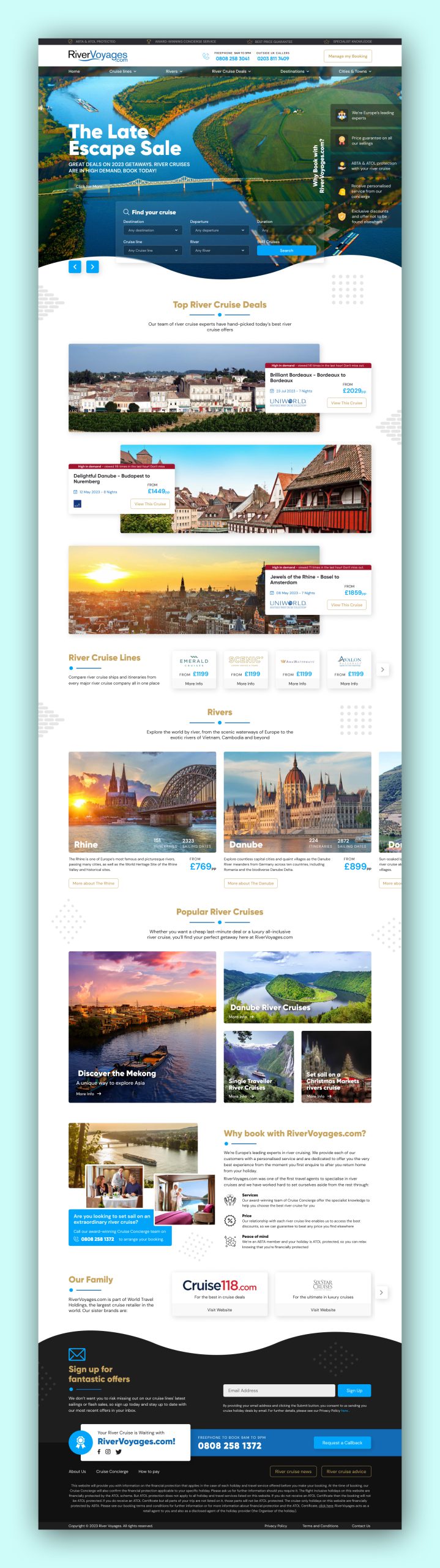 The UI design for RiverVoyages focuses on delivering an elegant and immersive experience for potential travelers. The layout is crafted to showcase stunning visuals of river cruises, with smooth navigation and intuitive booking features. Using a harmonious blend of vibrant colors and luxurious elements, the design highlights the journey’s exclusivity and adventure. The goal is to make exploring cruise options and booking a seamless, engaging process for users.