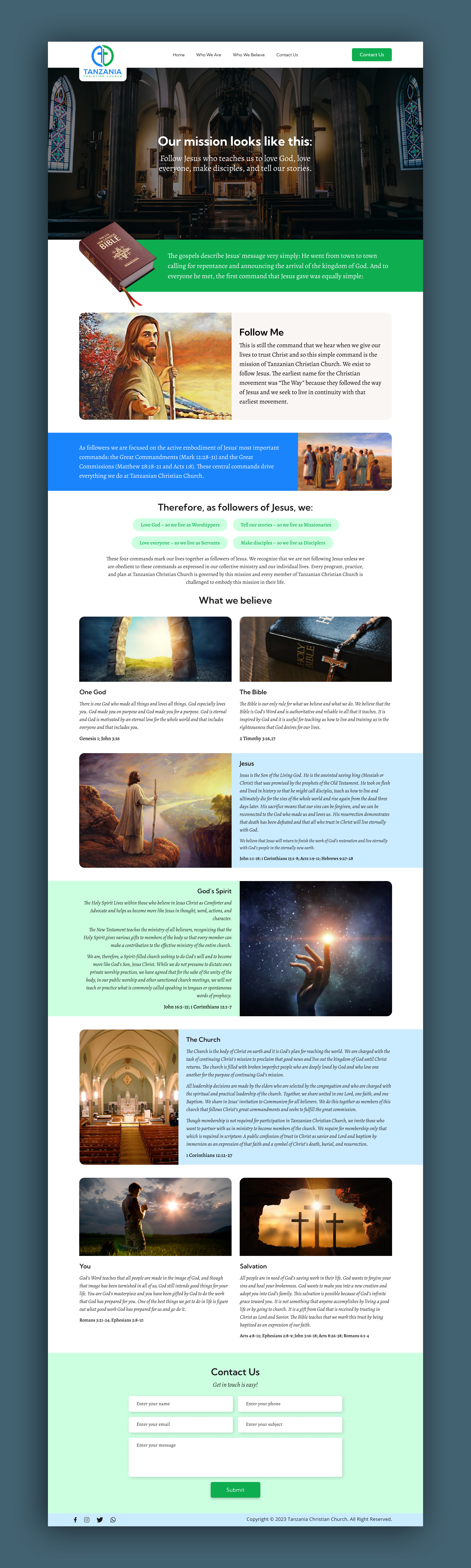 The Tanzania Christian Church website design focuses on creating a warm and inviting digital presence that resonates with the church’s mission of faith and community. The mockup emphasizes an intuitive and welcoming user experience, combining gentle colors and serene visuals that reflect the church’s peaceful and supportive environment. Navigation is designed for ease of use, guiding visitors through sections on worship services, community programs, and ways to get involved, ensuring that members and newcomers alike can connect with the church’s offerings effortlessly.